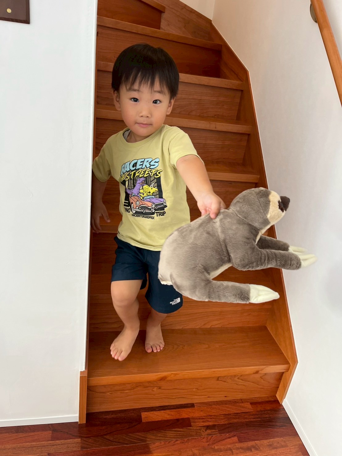 お引渡しでは、じょうじくんがお気に入りのナマケモノのぬいぐるみを持ってきてくれていました♪