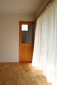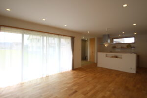 LDKは、大きな掃き出し窓がお家に光を取り込んでくれる、広々とした空間に。