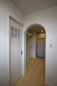ウォークインクローゼットに続く入口は、アールがかかっていて可愛らしいです🥰