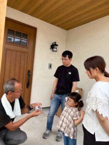 まずは、現場監督の藤井さんから鍵交換の説明を受けます。