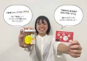 髙橋さんの出身、高梁市の特産品である「ゆずニャーニャレード」をお渡ししています。