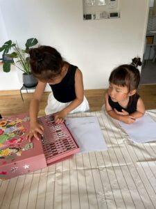 撮影終わりには、プリンセスのお絵かきセットで姉妹仲良くお絵かきタイム。