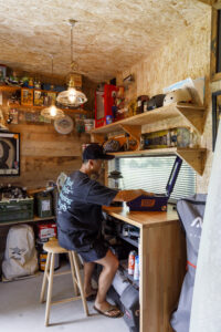 まずは、このかっこいい外観!ラップ仕上げのパワーボードを採用しています。夏の青空と旦那さん愛用のサーフボードの組み合わせも最高ですね✨