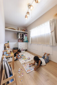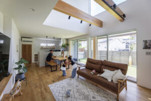 LDKは大きな窓からお庭の緑が見え、吹き抜けからはたっぷりの自然光が入り、とっても居心地の良い空間でした。(撮影中に変顔をして、お互いを笑わせるお子さんたちも最高に可愛かったです!笑)