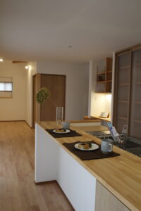 カウンターの幅を広めにとっているので、ハイチェアを置いて食事を楽しむのも良いですね🍳