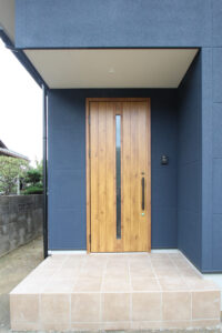 外壁の色に合わせて、玄関ドアも少しカジュアルな印象に。
