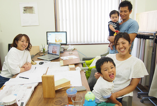 着工から完成までは約4カ月。現場監督が仲介役となり、大工さんをはじめ、職人さん、協力業者さん達と一緒に、お客さんのこだわりを実際の現場に反映していきます。工事は、小川建美の家づくりに共感してくださる職人さん・業者さんだけにお願いしています。
