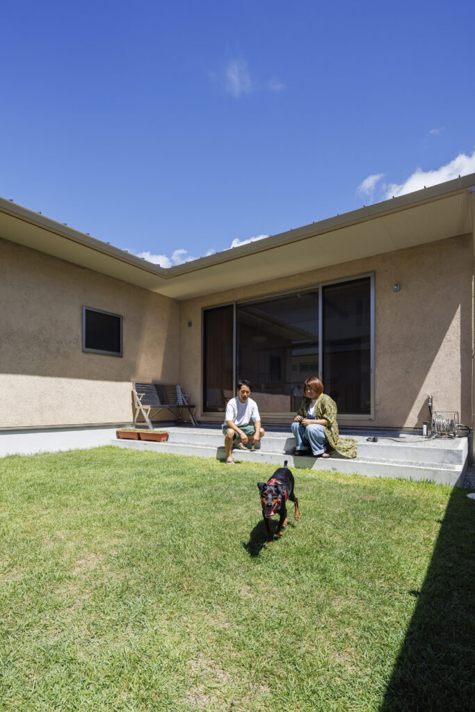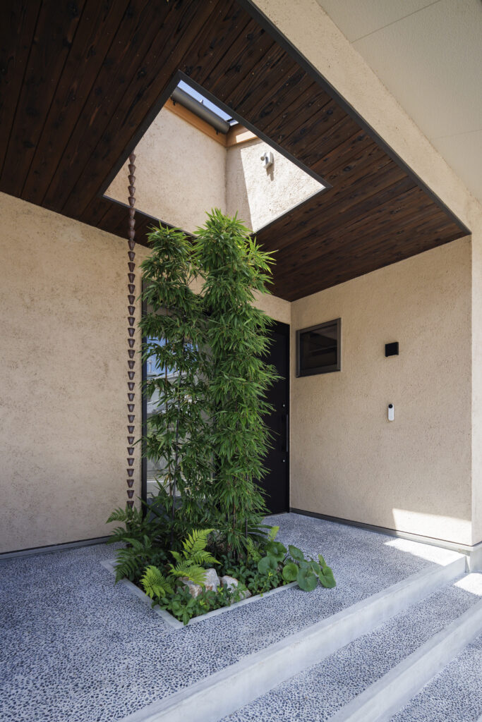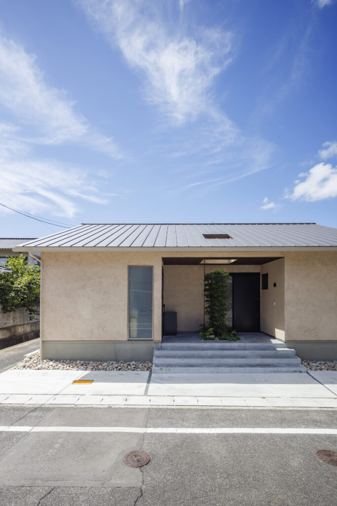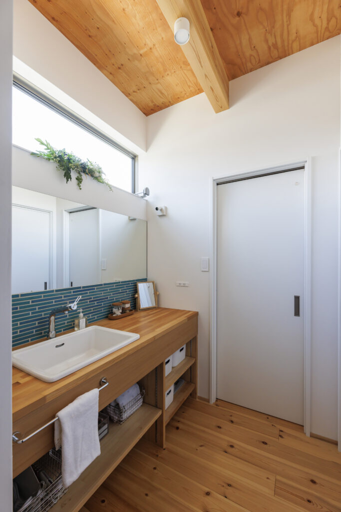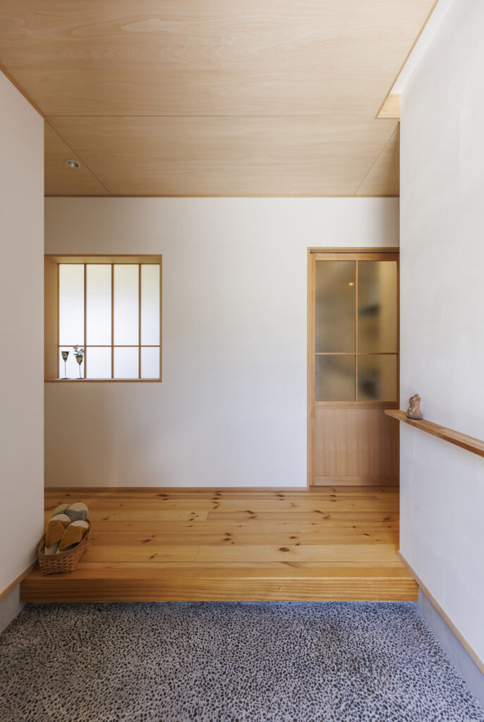 やさしい空気を纏うH様邸は、和風の平屋のお家。玄関前にある植栽を眺めながらお家に入ると、自然素材のやわらかな香りに包まれます。堀座卓のあるLDKや耳付きの無垢板カウンターなど、見どころ満載。また、気密や断熱性だけに注目するのではなく、自然が生み出す清々しさを取り入れて快適に暮らすことも、H様が大切にしたポイントです。珪藻土や無垢材をたっぷり使ったり、風通しを考えた間取りにもこだわりが。自然が与えてくれる心地よさを、五感で感じられる癒しのお家が完成しました。